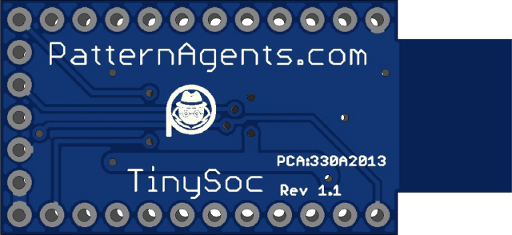 TinySoc is a simple USB based Programmable System-on-Chip that you can either plug into a breadboard, or solder wires directly on to the board for embedded applications. PatternAgents TinySoc gives you several analog and digital channels that you can program.